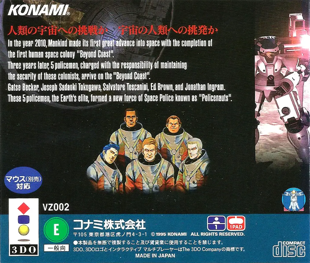 Policenauts is a Japanese-style adventure with action elements, similar in many ways to Snatcher. The player interacts with the environment in a point-and-click fashion: positioning a cursor over an object allows the player character to examine it or perform other context-dependent actions. There are a few puzzles in the game, but most of the time the story is advanced by visiting various locations, examining objects, and talking to characters. Conversations usually include a selection of topics.