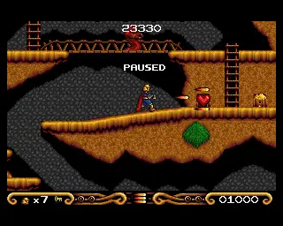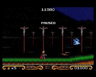 A platform shoot-em-up featuring a reincarnated knight who was tasked with freeing the world of Lylvania from the tyranny of 3 demented Warlocks. The game set over ten large levels. The early levels are reasonably linear, but they soon become larger, requiring much exploration. Hidden rooms and caves can be found, containing extra lives, magical power-ups and level warps. Other features of this game are smooth parallax scrolling, thunder and lightning, rain, animating backdrops, stunning 256 colour graphics and great sound effects and music.