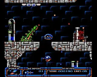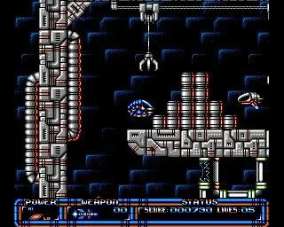 This side-view shoot ‘em up scrolls in multiple directions, moving it away from the R-Type game style and more towards Blood Money. Most of the danger comes from wall mountings or static obstacles rather than actual sentient opposition. The levels are large and multi-directional, with a map feature to help you progress through each one. Power up weapons can be collected. The gameplay is quite systematic, with a measured approach working better than a gung-ho ‘shoot first, ask questions later’ mentality.