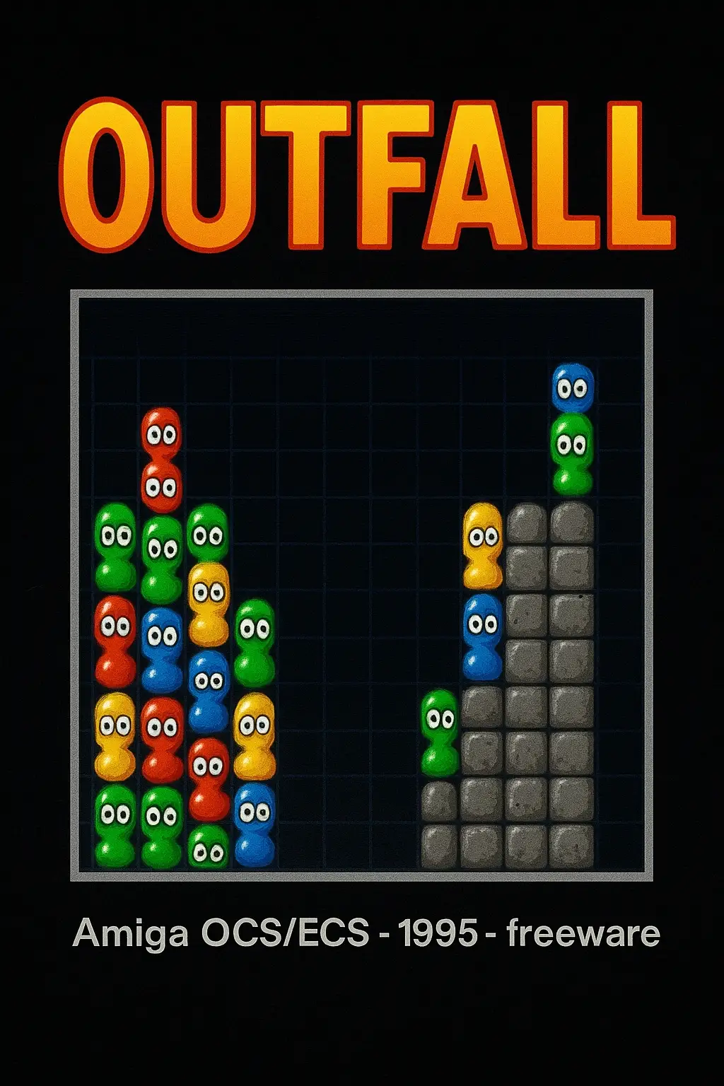 A fast-paced falling-block puzzle game inspired by Puyo Puyo. Match groups of four colored blobs to clear the board and send grey “garbage” blocks to your opponent. Features single-player, two-player versus, and customizable difficulty settings. Simple, addictive, and polished for a freeware Amiga release.