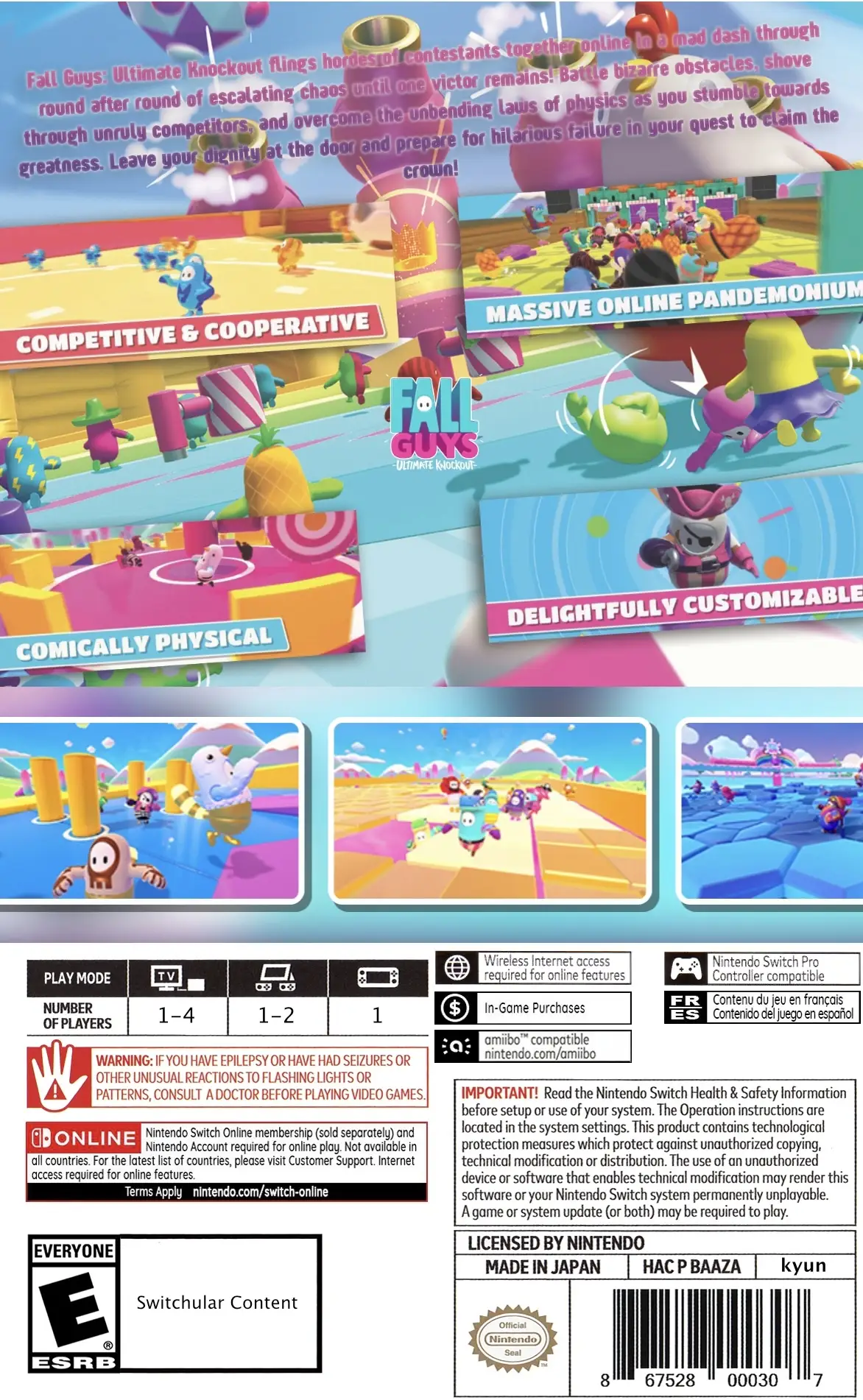 Fall Guys is a free-to-play, cross-platform, multiplayer “party royale” game where players control jellybean-like characters through chaotic, obstacle-filled courses. With up to 32 players (formerly 60) competing in rounds of mini-games, the goal is to qualify by surviving, racing, or scoring points until one player wins a crown.