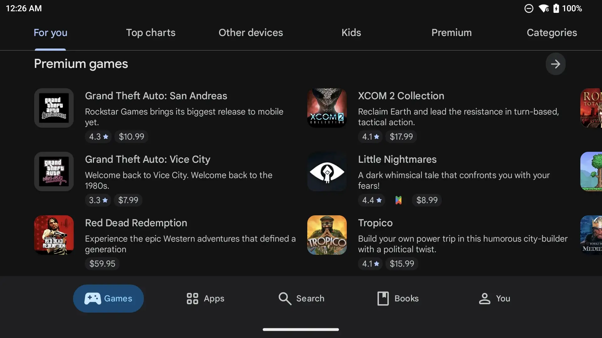 Google Play has also served as a digital media store, with it offering various media for purchase (as well as certain things available free) such as books, movies, musical singles, television programs, and video games.