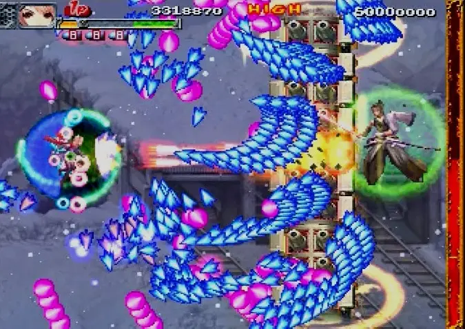 Famitsu gave the game scores of 8, 8, 8 and 9 from four reviewers, adding up to a total score of 33 out of 40.[7] As Rising Star's inaugural U.S. title, Tech-Gaming found the game a “promising offering, offering stateside shoot ‘em up fans an exceptional entry into an increasingly niche genre.”, and praised the title's depth of play mechanics.[11] GameSpot gave the game a score of 8 out of 10, describing it as “a well-crafted dose of over-the-top bullet-hell action.”[8] Destructoid gave the game a score of 9 out of 10, concluding that “you may just find yourself ascending to bullet hell heaven if you dedicate some time to learning the game’s obscure but absolutely thrilling mechanics.”[4]