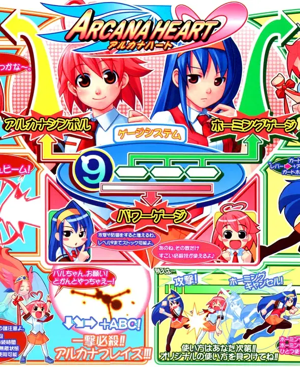 EX Ghost based system. New 2D fighting franchise, 31khz video mode only, however the rest is Jamma spec. The full version is an update to the regular Arcana Heart PCB. Full version includes engine tweaks, different character colors and a few more moves.