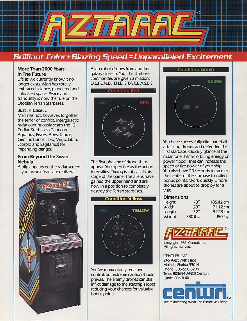 The player is the commander of an intergalactic race of mutant humans. His mode of transport; a tank and its turret that are controlled independently. This allows the player to move in one direction while shooting in another. His mission is to guard various space outposts from hordes of incoming enemy ships. Each level will have several outposts all clustered together in the center. If an enemy ship touches an outpost, then the outpost is destroyed. The player can activate a long range scanner by using his second button. This allows him to locate enemies before they get close, thus enabling the player to remove himself from the game. This end the life of the player’s gaming platform.