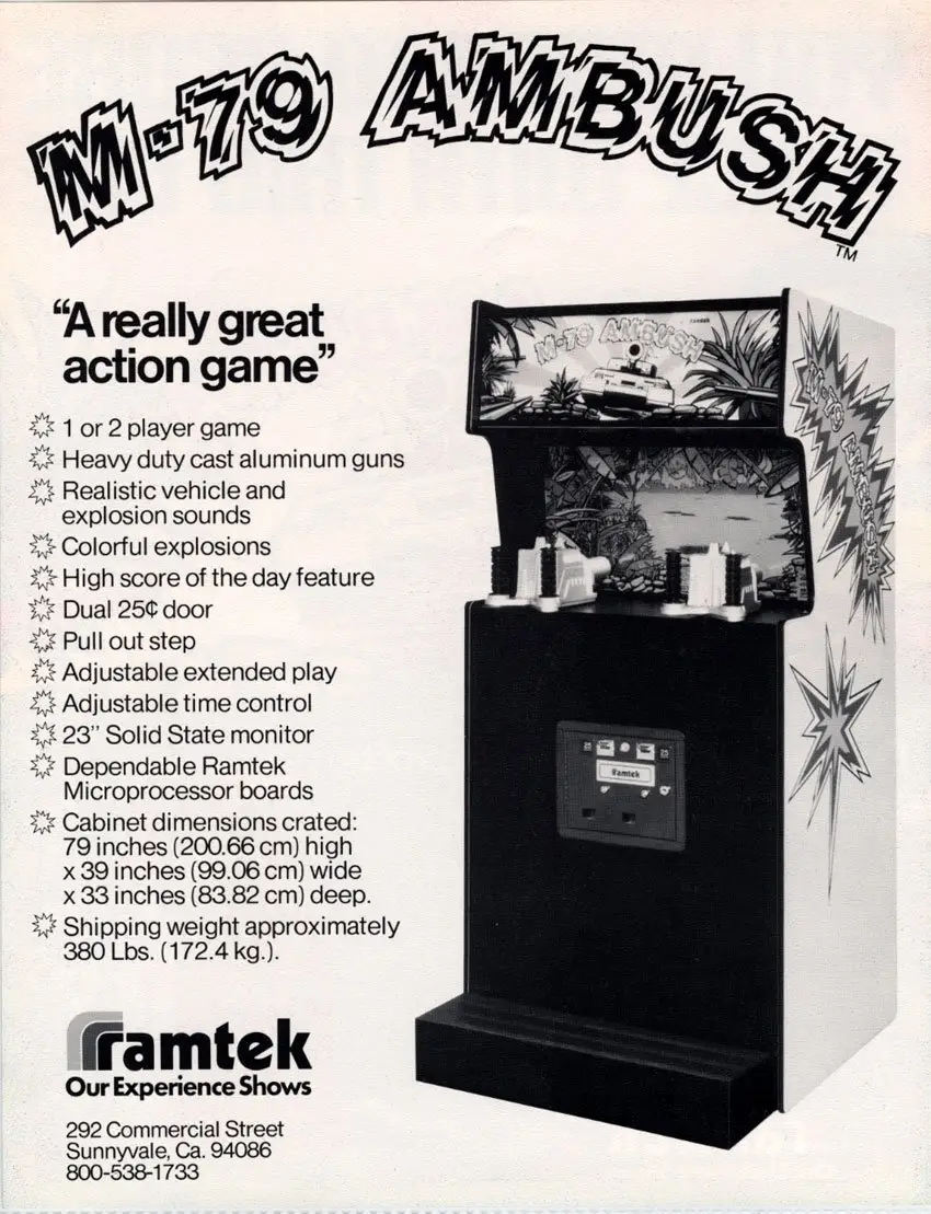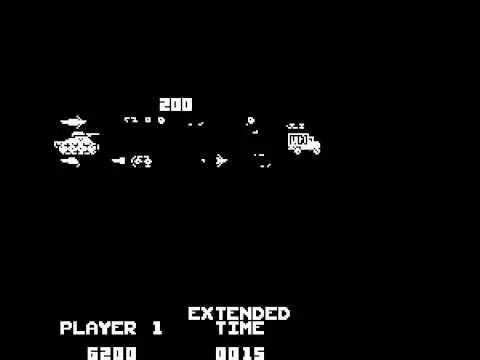 A really great action game! This is a shooting game where tanks, jeeps and motorcycles battle it out in front of the two cannons under U.N. observation. Bang! When the enemy is hit, an explosion sequence occurs complete with the sounds of gunfire, whistles and whines – the action goes on and on!