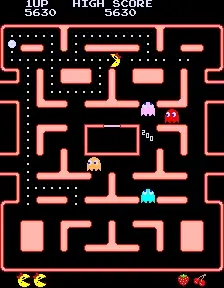 The ghosts' behavioral patterns are different, and include semi-random movement, which prevents the use of patterns to clear each round. Blinky (red) and Pinky (pink) move randomly in the first several seconds of each level, until the first reversal. Inky (cyan) and Sue (orange) still use the same movement patterns from the previous game to their respective corners, again until the first reversal.
