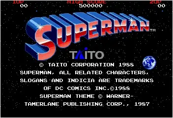 Superman is an arcade Beat ’em up/Shoot ’em up released by Taito Corporation in 1988. It is based on the popular hero icon Superman from DC Comics. Released in 1988 for the X System, The player assume the role of Superman, who must fight through five levels to make the world safe from the evil Emperor Zaas. The second player’s red Superman is identical to the first player’s blue Superman, except in appearance. However, the red Superman’s presence is never explained in the game.