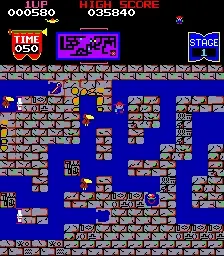 Taking on the role of an explorer grave robbing Tutankhamun's tomb, the player is chased by creatures such as asps, vultures, parrots, bats, dragons, and even curses, all that kill the player on contact. The explorer can fight back by firing lasers at the creatures, but he can only cover the left and right directions. The player is also endowed with a single screen-clearing “flash bomb” per level or life. Finally, each level has warp zones that teleport the player around the level, which enemies cannot use.