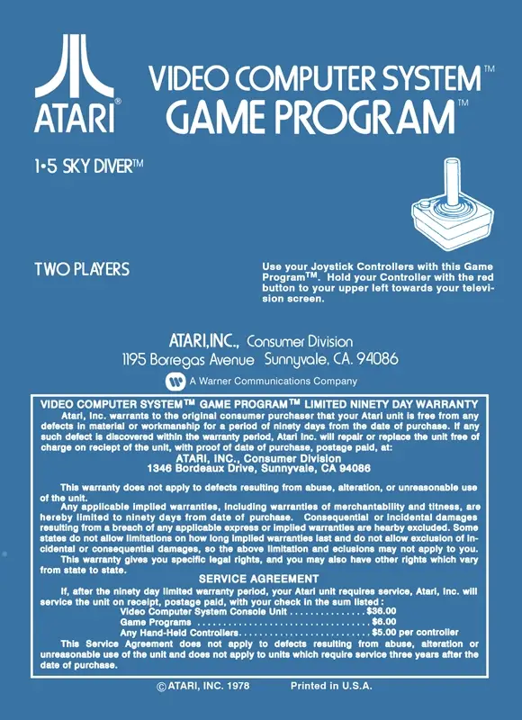 Sky Diver is a 1979 Atari 2600 video game developed and released by Atari in the USA on March 15, 1979.