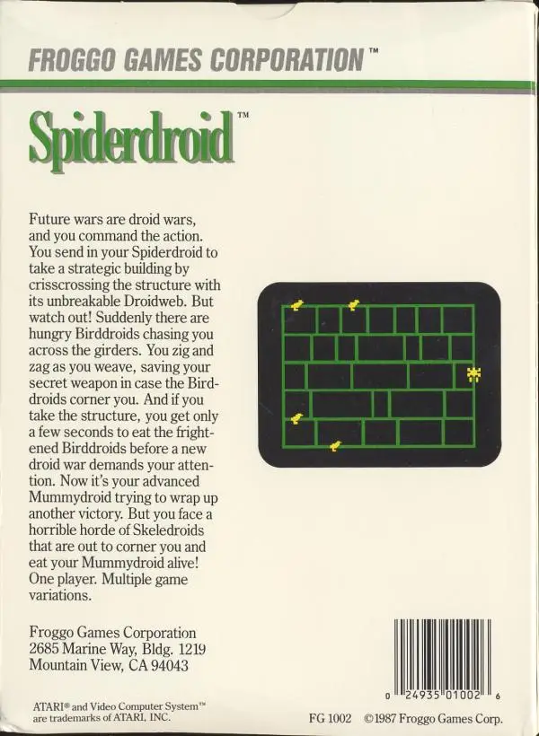 It’s the future, when droids do battle. You send your Spiderdroid in to capture a building by covering the structure with its unbreakable Droidweb. Your Spiderdroid lays down a web strand as it crawls along each girder. Once you have strung a web strand completely around an opening, the Spiderdroid flings a web over that opening. Your objective is to travel all the building’s girders so the entire structure is caught in