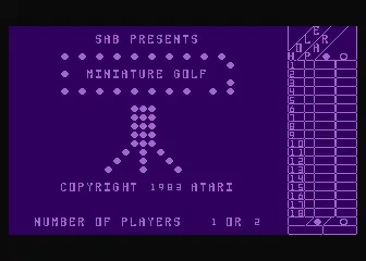 Unreleased prototype game by Steve Baker for the Atari 5200. However it was completed and is fully playable. Due to the Hi-Res mode used the game has some odd choices for colors but other than that is quite well done and simulates Miniature Golf very well.