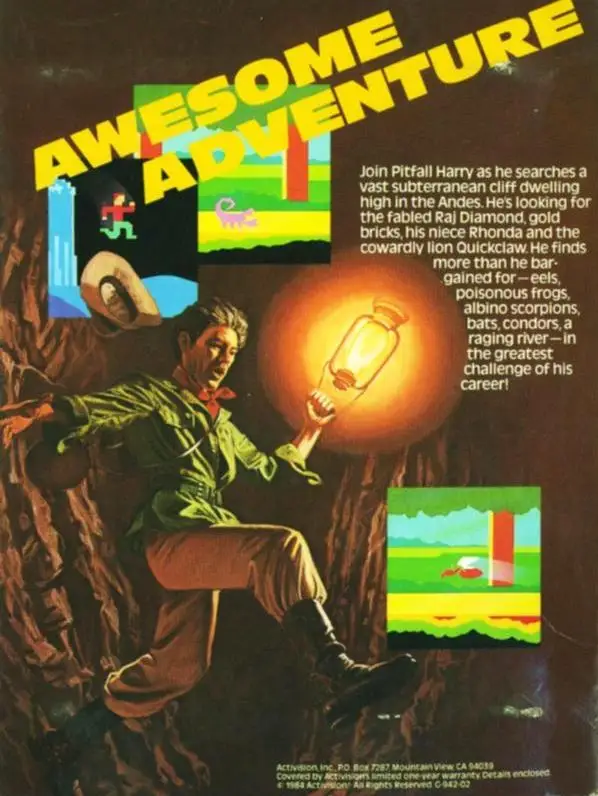 Lost Caverns is the sequel to David Crane’s Pitfall. Both games were originally released for the Atari 2600 and later ported to multiple platforms. Pitfall II maintains much of the look and feel of the first game, but it opens the world up into a free-roaming adventure, rather than progressing on a linear path. Pitfall Harry’s quest in Pitfall II is to collect a diamond, find his niece Rhonda, and his cowardly lion companion, Quickclaw. Upon collecting all three, the quest ends. In most versions of the game, this is also the end of the game.