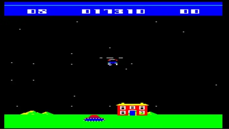 Rescue the hostages by picking them up from the ground and transporting them back to base. You may bomb the tanks but lose points if you kill a hostage with a bomb or a landing.