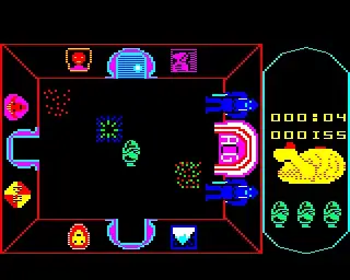 The Castle consists of 5 floors, including the 'Atic' and the caverns, which contain countless rooms. Within the many rooms you may find furniture, food, drink, objects, Ghosts, Ghouls and Monsters. Eat and drink sparingly so that you do not deplete your food supply. Collect and utilise any objects you find, to your best advantage, be wary of slamming doors and working trapdoors which will try to trap you, and avoid contact with all the Ghosts and Monsters, as each of these will use their best endeavours to hamper your search.
