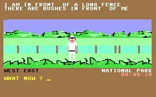 In African Safari, you play the role of Dr. Livingstone who must explore a national park near the Zambezi River. The game is an adventure in which you control Livingstone using a joystick and perform actions using the keyboard. You start the game with a bad back, and cannot lean over to pick things up; So you need to befriend wildlife, such as monkeys, so that they can pick things up for you.
