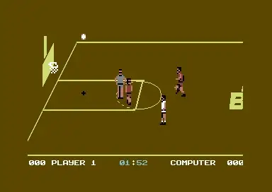 Onto the game, it is viewed from the side showing a part of the court. The joystick moves the player flashing and fire button throws the ball.