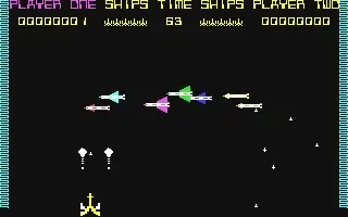 Arcadia is a space shoot 'em up along the lines of Galaxians and Space Invaders. You have a ship at the bottom of the screen. Enemy ships come at you in waves scrolling across the screen from right to left. There are eight levels. When the last level has been completed the game cycles to level one again and continues with no increase in difficulty. You get an extra life if you clear 4 waves. They keep on coming and the object is to get a high score.