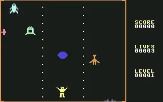 You are Egbert. Your job is to push the red button on the side of the screen, avoiding the aliens that travel along the sides of the screen. Just touch the red button with your character to push it. There is also an alien egg moving slowly down the center of the screen. You cannot let it reach the bottom, take it to the top or outside the marked center of the screen or it will hatch an alien that will kill you. You can walk to the egg and push your fire button to grab the egg so you can move it up higher to give you time to push the button. In later levels, the buttons slide down the screen. Just keep going to see how high you can get your score.