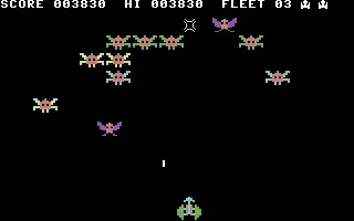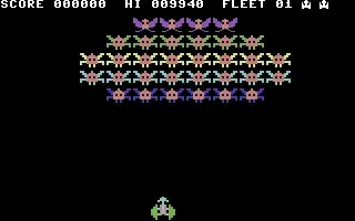 Galaxions is based on the arcade game Galaxian where you control a spacecraft at the bottom of the screen, moving left or right, to destroy alien invaders above. The aliens sit in a formation and move across the screen left to right and back again dropping bombs to destroy you. Occasionally a couple of aliens will break from formation and swoop down and when they move off the bottom of the screen they appear at the top again. If you are hit by an alien or a bomb then you lose one of three lives and once you destroy all the aliens then they appear again in formation.