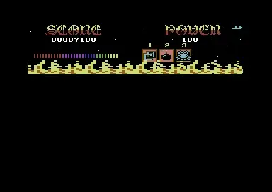 Shooting enemies gives you points but also builds up your magic points. When you collect enough magic points you’ll get a spell to cast. These spell are really useful and quite fun to use. There is a bomb spell that kills everything on the screen and “frog” spell that lets you jump a large holes. Some spells change depending on the level of the game you’re playing.