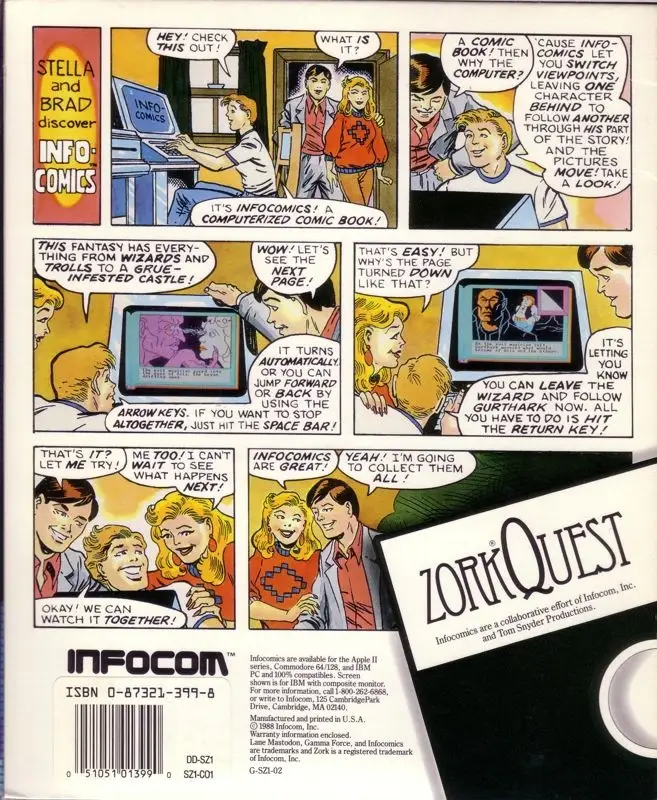 ZorkQuest: Assault on Egreth Castle can be called an interactive comic book. The game consists of text accompanied by pictures, somewhat similar in visual style to comic books; the interaction is restricted to the player's choices that affect the storyline. The player is able to experience the story from the points of view of the several main heroes, witnessing their personal stories intertwining. Several playthroughs are necessary to experience the story in its entirety.