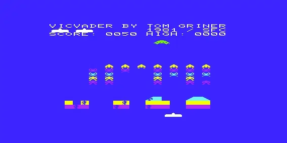 The player controls a small ship at the bottom of the screen that moves laterally and fires forwards. The goal is to earn points by shooting aliens before they reach the bottom of the screen. The aliens march back and forth, and each time they reach the edge of the screen they will drop one row closer to the bottom. Aliens intermittently return fire. Shoot them all to move to the next harder level. If any aliens reach the bottom of the screen it's game over. A flying saucer intermittently moves across the top of the screen for bonus points. Three shields offer protection from alien fire, but also block the player's shots. The player begins with 3 cannons.