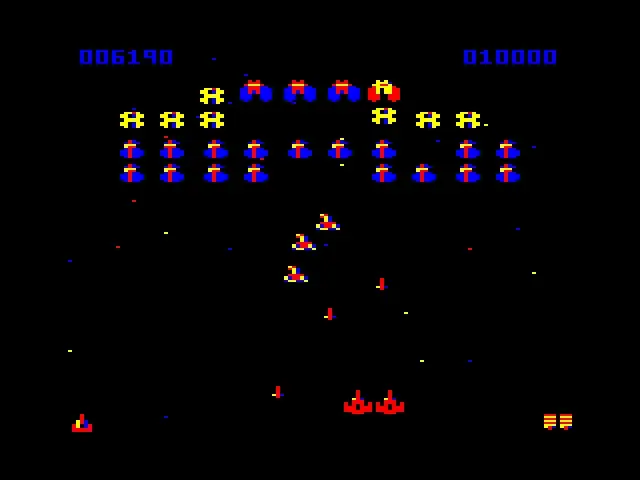 Every so often, you will be presented with a special challenging stage where aliens just move across the screen in fixed patterns, and you can shoot as many as you manage for an extra bonus. To get this right, you'll have to memorize the patterns and stay one step ahead of the moving aliens.
