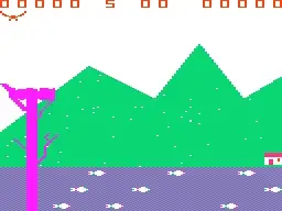 Ossie is a single screen action game where the player is in control of an osprey. The osprey has five chicks located in a nest at the top of a tree located on the left side of the screen and the player's task is to feed them with fish to prevent them from starving. At the bottom of the screen is a river where fish swim in lines from left to right. Fish are caught by positioning the osprey at the right height and pressing the fire button to make it dive. The height decides which row of fish can be reached. Once a fish has been caught it has to be flown and dropped into the nest. The time is limited and if the fish is not delivered within twenty seconds a chick will die. Additionally there is a poacher that occasionally climbs the tree in an attempt to steal a chick. When it happens the osprey has to fly into it to make it fall down or a life will be lost.