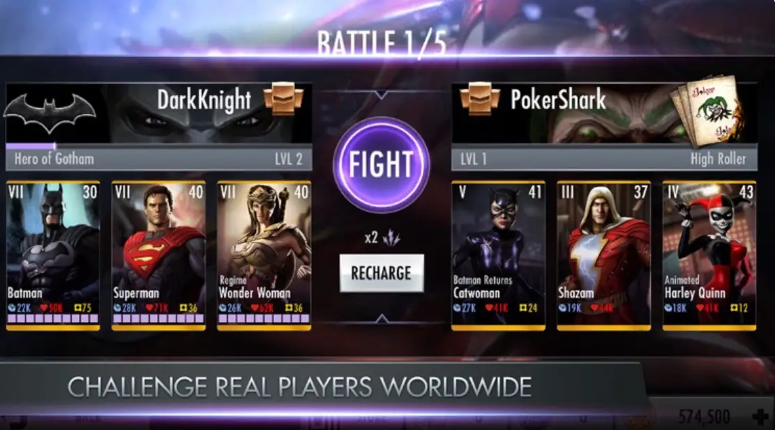 Collect and play as your favorite DC Comics icons: Superman, Batman, Wonder Woman, The Joker, Green Arrow, Flash, Bane, Green Lantern, Doomsday, and many others. With each alternate version of these iconic characters you get a new set of powers and moves, and a whole new fight!