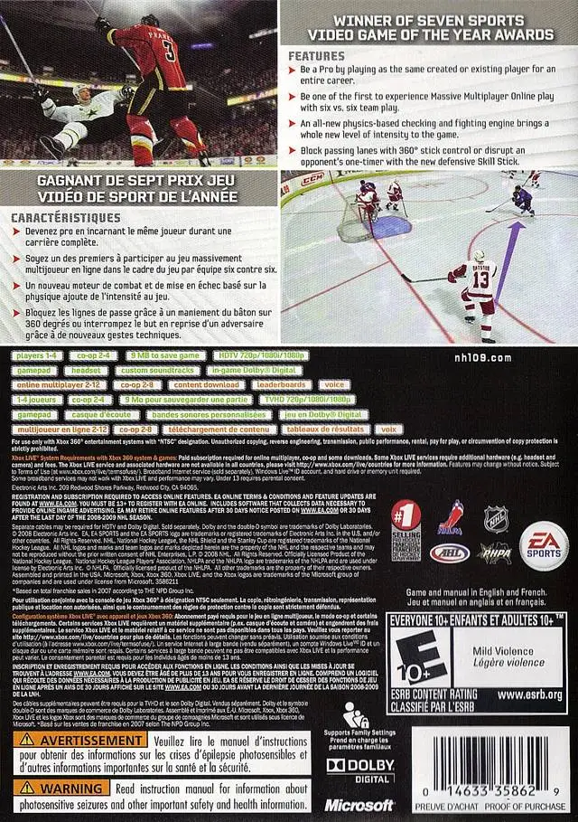 NHL 09 is the 17th video game in the NHL series released by EA Sports in 2008. Both the Nintendo DS and Wii versions had been planned, but canceled. It was the last installment of the NHL series to be released on Playstation 2 and the last to get a PC release