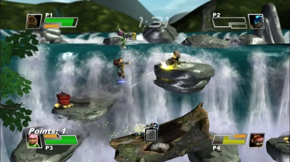 Small Arms is the frantic multiplayer brawling game with the action and precision of an arcade shooter. Up to 4 players can join in the battles across many dynamic and richly detailed levels. Choose from a cast of awesome fighters like cyborg tabby cats, assassin truffle pigs and mutant chimney sweeps. Jump from platform to platform shooting each other to pieces with 360 aim. The side-scrolling action is easy for anyone to pickup, and hard to put down.