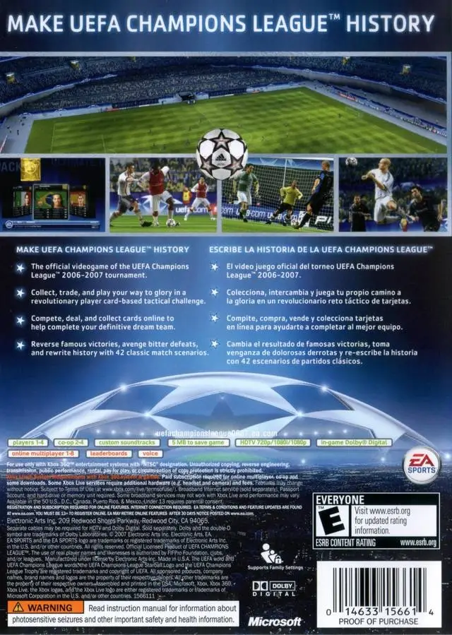 UEFA Champions League 2006–2007 is the official video game of the UEFA Champions League of 2006/2007. Developed by EA Canada, it is published by Electronic Arts worldwide under the EA Sports label. It was released on 20 March 2007 in North America, 22 March in Australia, and 23 March in Europe.[1]