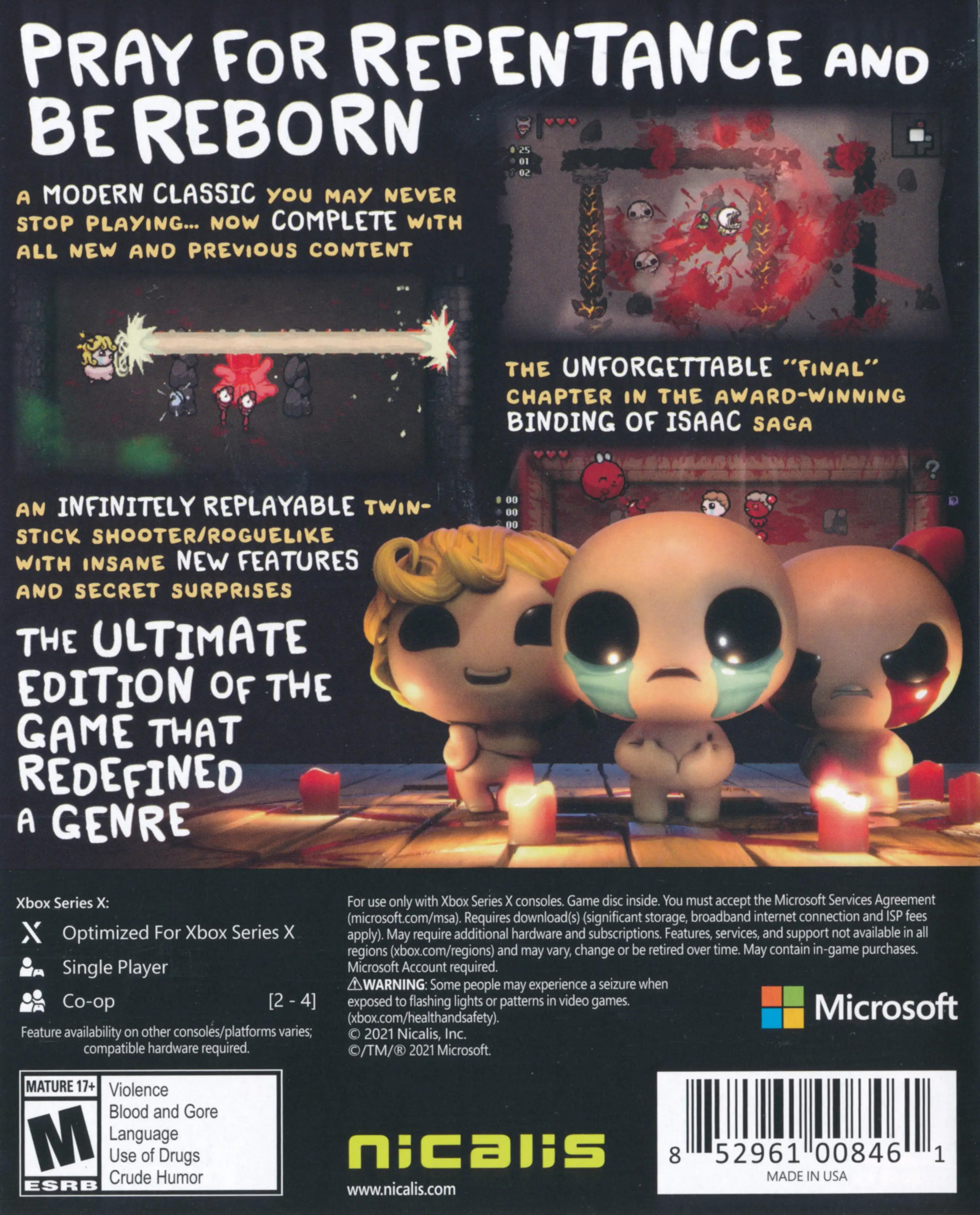 'The Binding of Isaac: Repentance' is the ultimate edition of the genre-defining roguelike, with so many additions and improvements that it feels like a brand new game. Experience Isaac’s adventures with new twists, terrifying turns and OVER 500 HOURS of new gameplay!