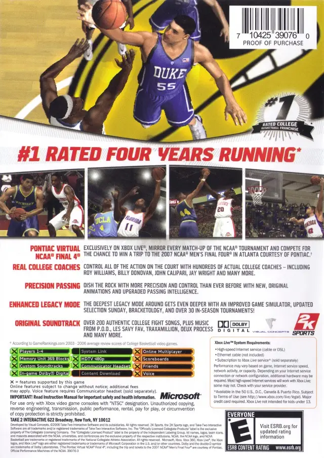 With over 325 NCAA Division I schools, College Hoops 2K7 defines the college basketball experience. True College Atmosphere – The most immersive college game yet, College Hoops 2K7 puts the fans in the game and makes them a part of the team