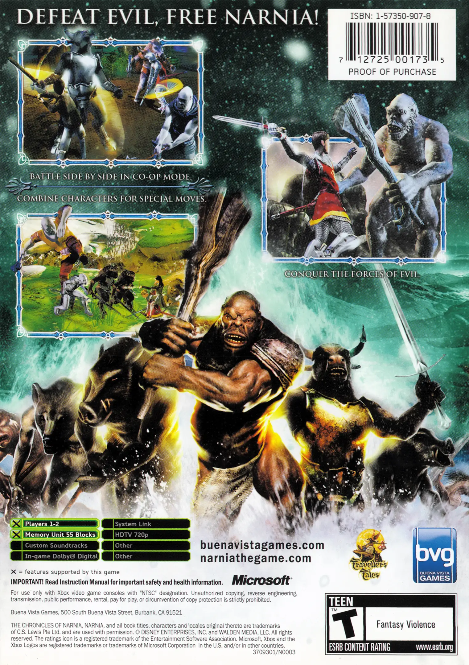 Players enter the world of Narnia, a land frozen in a 100 year winter by the evil powers of the malevolent and evil White Witch. In order to end this frigid captivity and free his people, the mighty lion Aslan, true ruler of Narnia, invokes an ancient prophecy. It will become the destiny of four young siblings from our world: Peter, Susan, Edmund and Lucy Pevensie to work together and use their unique combat skills, weaponry and abilities to defeat the Witch and her armies to save Narnia. These four unlikely heroes must battle the evil forces of the White Witch by waging war against a vast variety of creatures, including Centaurs, Minotaurs, Minoboars, Cyclops, Werewolves, Wraiths, Ankleslicers, Wolves, Satyrs, Boggles and more.