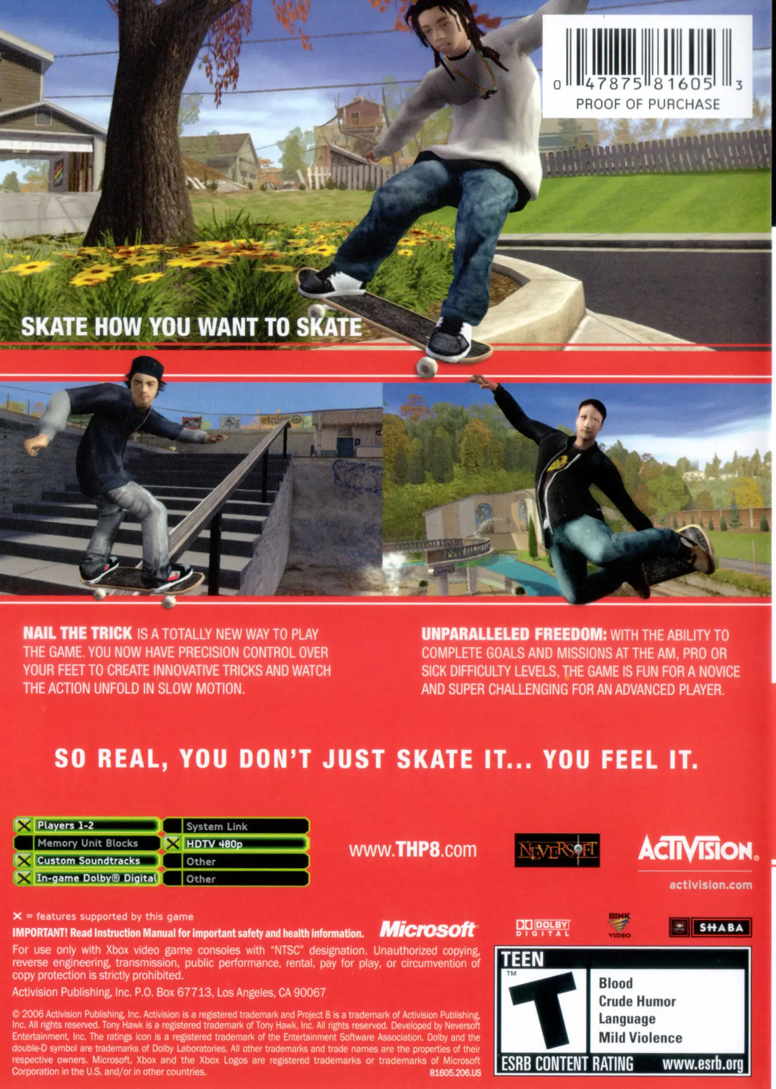 Reengineered from the ground up, Tony Hawk’s Project 8 immerses players in the definitive skateboarding experience using ultra-realistic graphics, enhanced physics and responsive controls that simulate the feeling of skating with every trick and bail. The game challenges players to experience the intensity and pressure of skating against some of the world’s top pros in true to life competitions as they aim to become the #1 skater.