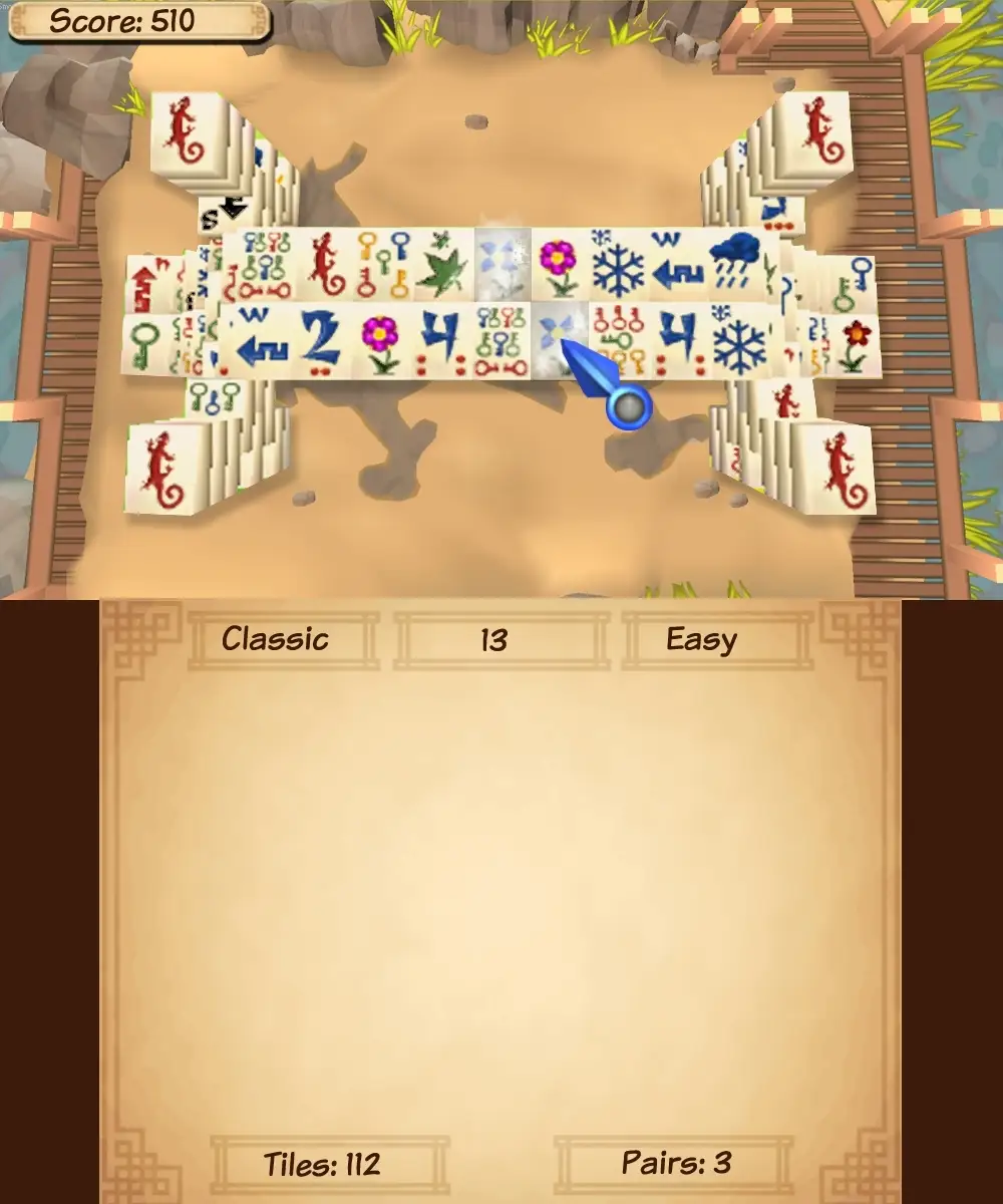 Become the Mahjong 3D Champion! Meet the challenge and become the real Mahjong master! Go back to Mahjongs Asian roots and follow the campaign of Emperor Qin Shi Huangdi as he conquers and unites China. Its up to you to decide on the best strategic move: Do you want to defeat Chu first or head north towards Wei to persuade them to join your side? Experience the world famous Chinese board game for the first time in real 3D. With a humorous story and charming characters you will enjoy endless fun with that classic game on your Nintendo 3DS!