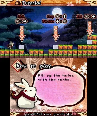 You control Usagimaru, and sets off on a journey to rescue captivated villagers from the evil grasps of the Mononoke. Your mission is to bring the villagers to the safety of the Usagi Statue.