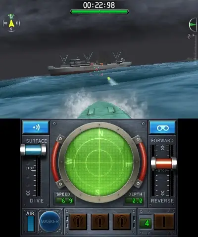 This strategic first-person shooter is the successor to Steel Diver. It features more tactical action game play than typical shooters, as players are asked to navigate heavy-duty submarines while staying one step ahead of their enemies. People can compete in local four-on-four team sub battles and go online to battle submariners from around the world (as long as each person downloads the game for him- or herself)