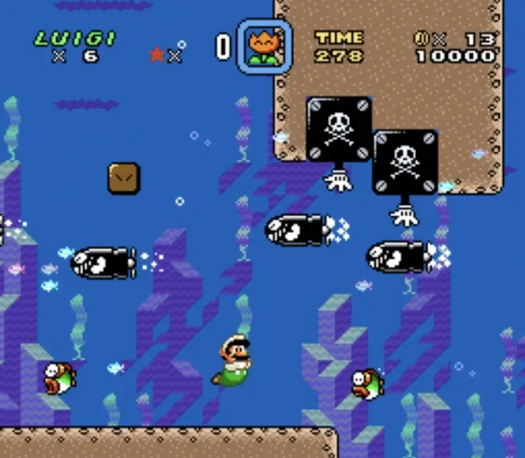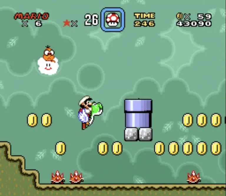 During a vacation in Dinosaur Land, Princess Toadstool gets kidnapped and a spell is cast on the inhabitants of the island. When they stumble upon Yoshi, a young dinosaur, Mario and Luigi learn that Bowser is responsible for the terrible misdeeds. Now, Yoshis are trapped in magical eggs that Bowser has hidden throughout seven castles. Many hidden paths aid Mario in making his way to Bowser’s castle, completing 74 areas, and finding all 96 exits. Discover items, including a feather that gives Mario a cape that allows him to fly and a flower that lets him shoot fireballs, in layers upon layers of 2-D scrolling landscapes. You can even ride Yoshi and swallow your enemies!