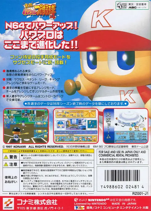 Jikkyō Powerful Pro Yakyū 4 is the first iteration of a traditionally Japan-only baseball video game series created by Konami on the Nintendo 64. It is known for its big-headed characters, and addictive arcade-style gameplay.