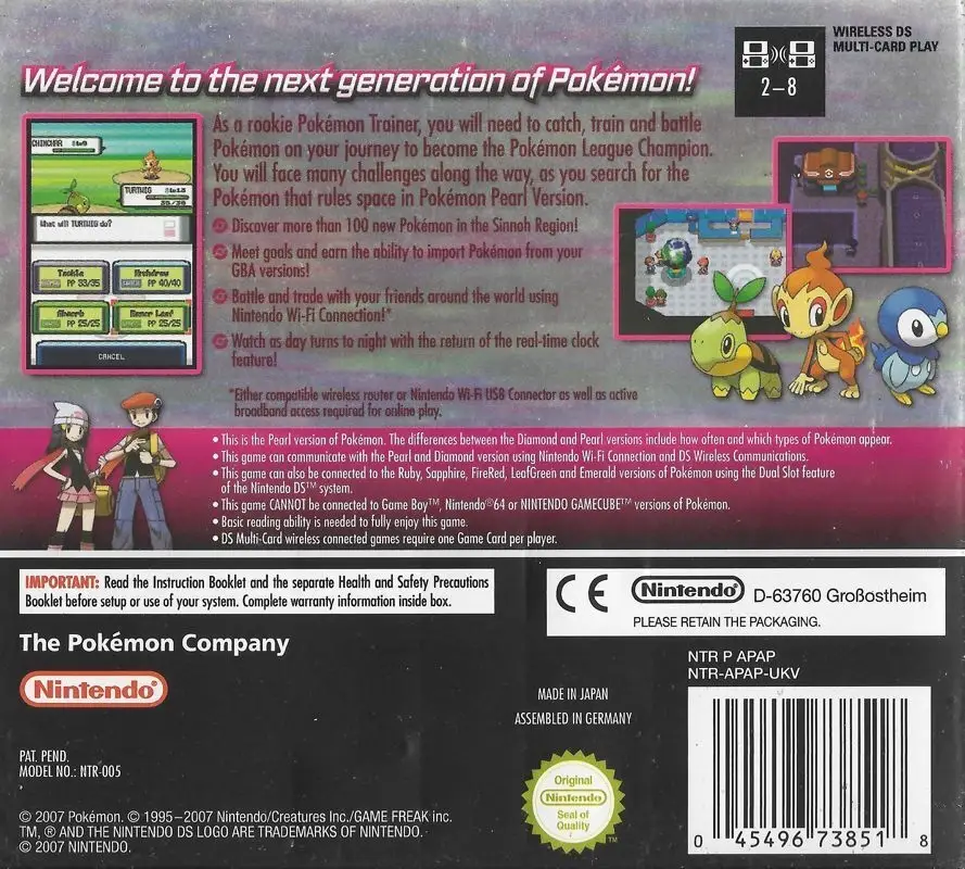 As a rookie Pokemon Trainer, you'll need to catch, train, and battle Pokemon on your journey to become the Pokemon League Champion. You will face many challenges along the way, as you search for the Pokemon that rules space in Pokemon Pearl Version.