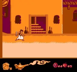 An unofficial port of Virgin Games' Aladdin from Sega Genesis/Mega Drive to the NES. Despite being unlicensed, it is considered far superior in quality to Virgin Games' own port of the game released in PAL territories, and features far superior music, graphics and controls. However, it only contains four levels – Agrabah Market, The Desert, Agrabah Rooftops and Rug Ride (spelt “Rugrid” in-game).
