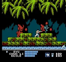 Contra Fighter is an unlicensed ROM hack of the NES game, G.I Joe: A Real American Hero. The publisher is Sakano. The original character sprites have been replaced by sprites that look similar to characters from Street Fighter, even though the play style is similar to that of Contra’s.