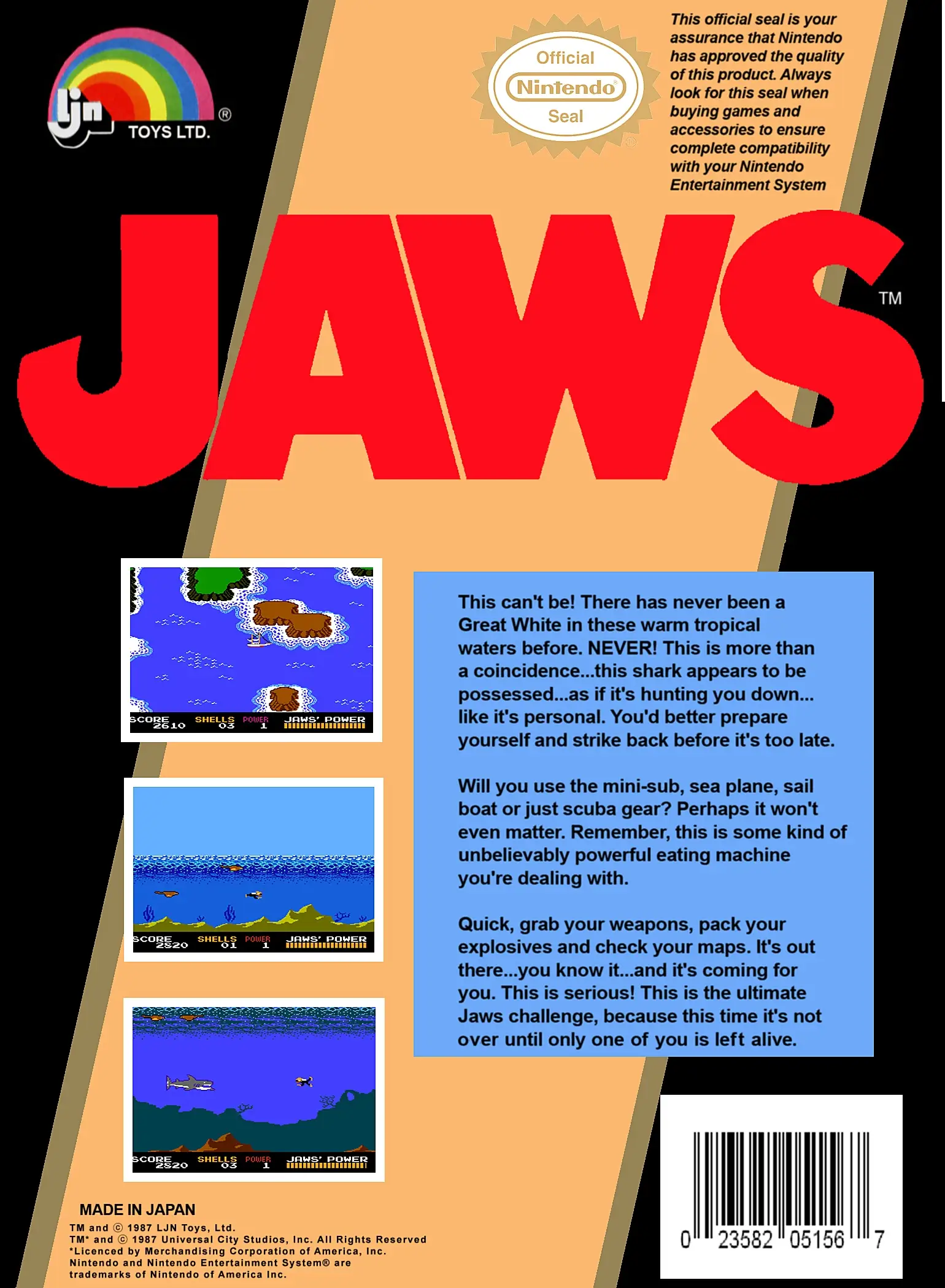This can't be! There has never been a Great White in these warm tropical waters before. NEVER! This is more than a coincidence… this shark appears to be possessed… as if it's hunting you down… like it's personal. You'd better prepare yourself and strike back before it's too late. Will you use the mini-sub, sea plane, sailboat or just scuba gear? Perhaps it won't even matter. Remember, this is some kind of unbelievably powerful eating machine you're dealing with. Quick, grab your weapons, pack your explosives and check your maps. It's out there… you know it… and it's coming for you. This is serious! This is the ultimate Jaws challenge, because this time it's not over until only one of you is left alive!