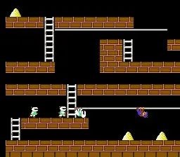The player controls a stick figure who must collect all the gold in a level while avoiding guards who try to catch the player. After collecting all the gold, the player must travel to the top of the screen to reach the next level. There are 150 levels in the game which progressively challenge players’ problem-solving abilities or reaction times.