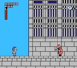 Paaman (or quite possibly Parman) is a comic in Japan which is done by the same guy who did Doraemon. Like that wasn’t already obvious just by looking at ‘em. All of the four characters that you have the choice of controlling have the amazing ability to fly in an amazingly awkward fashion. I don’t think there’s any difference in who you want to pick though. What’s awkward about flying is, if you’re flying Up and want to go Left, you don’t just automatically go Left when you hit the control pad… you go diagonally, then you go left. And you don’t sit still if you let go of the control pad, you have to hit A to stop. And then you have to hit A again to fall to the ground and walk around like normal. Which is all very weird. But you can jump REALLY high, so that’s cool.