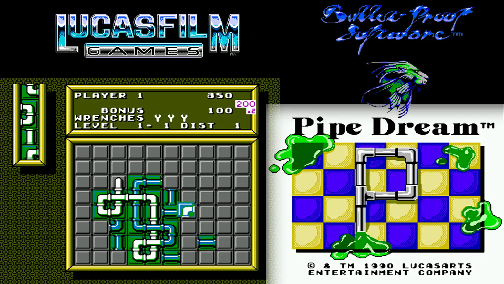 What are you supposed to do with 7 simple pieces of pipe and 8 weird ones? All you have to do is build them into a pipeline that’s no more complicated than the average oil refinery. But that’s the easy part. Seconds after you put the first pipe in place, this sticky, slimey stuff called flooz starts flowing through it. From that point on, it’s you against the flooz. But you’ve got four powerful weapons. Your right hand. Your left hand. Your brain. And your left brain. So what are your chances of out-smarting the flooz? Nobody knows for sure. But at last count, there were 14,567,984,176 ways to dream up a better pipeline.