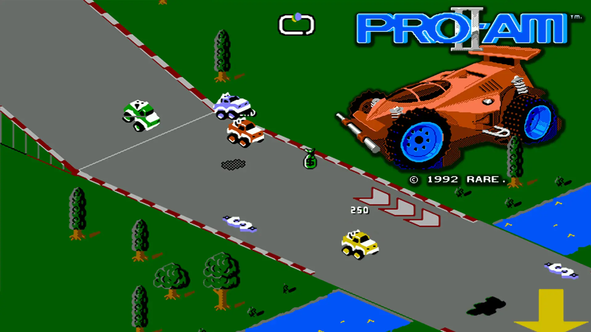 If you're into racing, but you're tired of racing big, unwieldy cars, then you should check out R.C. PRO-AM II for the Nintendo Entertainment System. You'll be in control of the remote-controlled cars that you remember from your childhood, complete with antennae to pick up your signal. There are 24 tracks covering a wide variety of terrain. If you're good enough to win a race, you can go to the R.C. Model Shop and upgrade your car's components to turn it into an unbeatable racing machine. You'll also have access to power-ups and weapons, adding a new element of strategy to the racing formula. Whether by yourself or with up to three friends, R.C. PRO-AM II delivers intense racing action miniature style!
